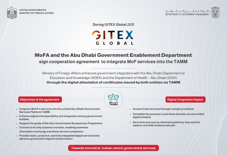 The UAE Ministry of Foreign Affairs (MoFA) signed a cooperation agreement with the Department of Government Enablement – Abu Dhabi during GITEX Global 2025.